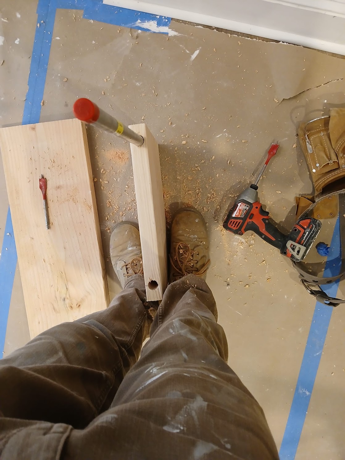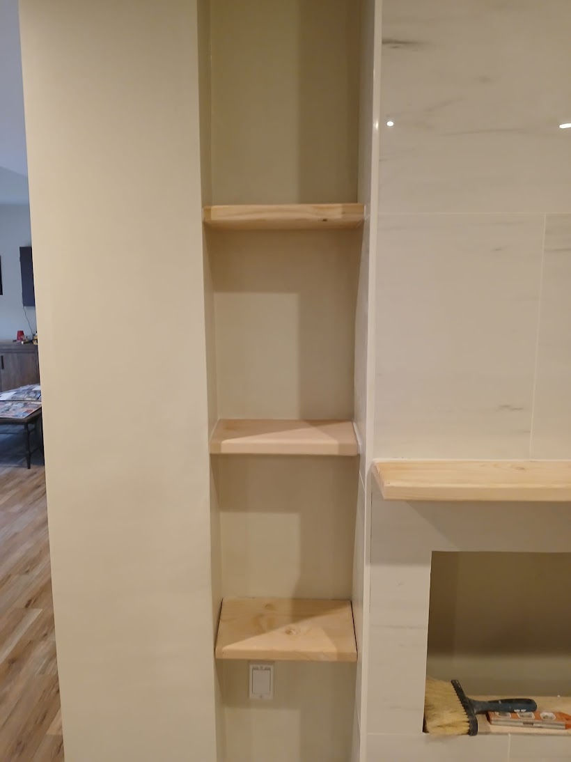 - Framing for electric fireplace & shelving installation